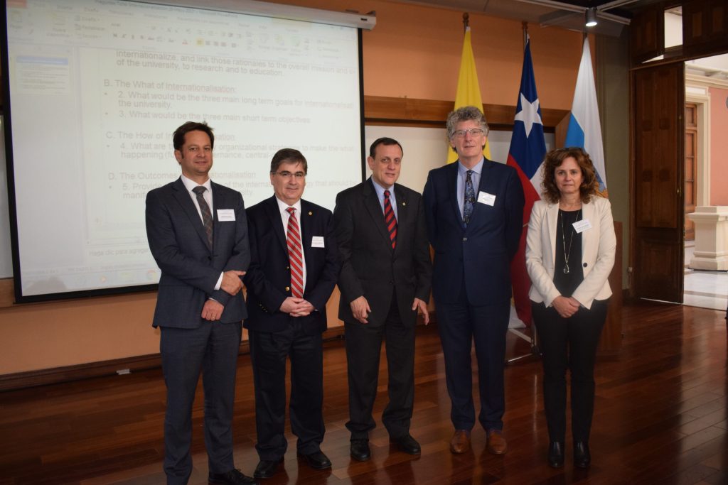 En el marco de la consultoría internacional orientada a generar una Estrategia de Internacionalización integral para la UC, el pasado 29 de mayo se llevó a cabo un taller interno liderado por el Prof. Dr. Hans de Wit y dirigido a las autoridades de nivel central y de las diferentes facultades de nuestra Universidad.