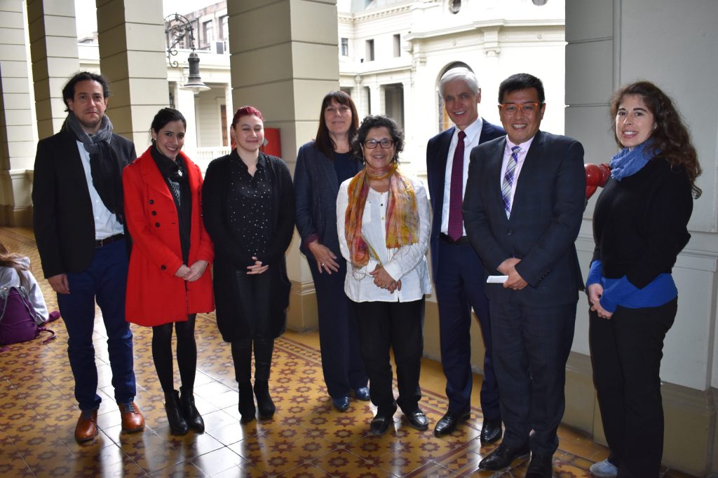 Por porta de la UC, la comitiva australiana se reunió con la Directora de la Dirección de Artes y Cultura, Miryam Singer, quién presidió el encuentro; Daniel Party, Director de Investigación y Postgrado de la Facultad de Artes; la Jefa de Proyectos Internacionales, Angélica Anabalón; y Catalina Gerstmann, International Grants Management Specialist.