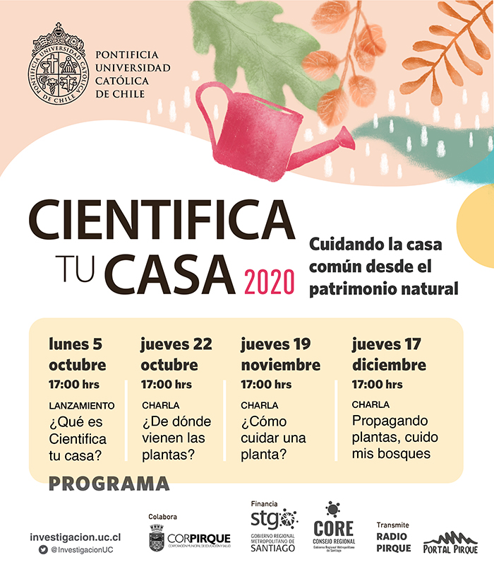 “Iniciamos Cientifica Tu Casa con la idea de entregar una experiencia científica a niños y jóvenes de colegios en tiempos difíciles de pandemia. En la primera fase, facilitamos materiales y guías para realizar experimentos científicos. En esta segunda etapa, continuamos con charlas virtuales, talleres y nuevos kits para estudiar y conocer la flora nativa de Río Clarillo”, comentó María Elena Boisier, directora de Investigación UC.