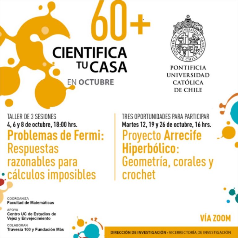 En octubre, Cientifica Tu Casa también desarrolló una charla de geometría hiperbólica junto con investigadores de la Facultad de Matemáticas donde se analizó la presencia de las matemáticas aplicadas en las formas de los arrecifes; en esta instancia también participó el biólogo UC e investigador de la Estación Costera de Investigaciones Marinas (ECIM), Alejandro Pérez Matus, quien hizo una exposición de las biología de los arrecifes.