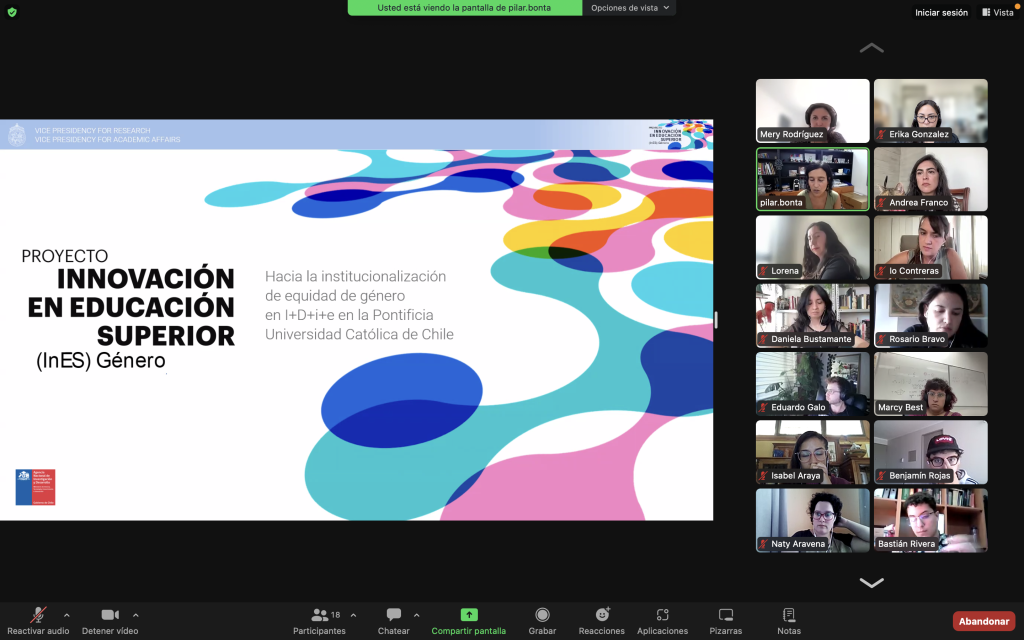 El InES de Género es una iniciativa de las vicerrectorías de Investigación y Académica de la universidad, y se encuentra en su tercer año de ejecución. En su hoja de vida figuran talleres para académicos, investigadoras y por primera vez se realizó uno para doctorantes y candidatos a doctores y doctoras.